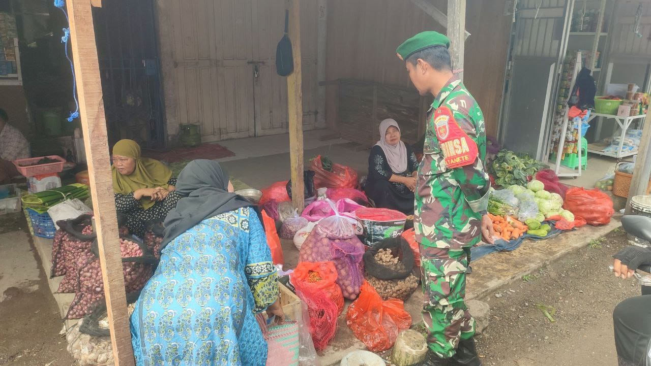 Sidrap, Detik9.com – Babinsa Koramil 1420-03/Maritengngae, Kopka Darwis, melaksanakan kegiatan pemantauan ketersediaan dan harga bahan pokok di Pasar Sentral Pangkajene, Kecamatan Maritengngae, Kabupaten Sidrap pada hari ini. Kegiatan ini bertujuan untuk memantau stabilitas harga dan memastikan ketersediaan bahan pokok yang terjangkau bagi masyarakat, serta mengantisipasi potensi masalah yang dapat mempengaruhi daya beli masyarakat.