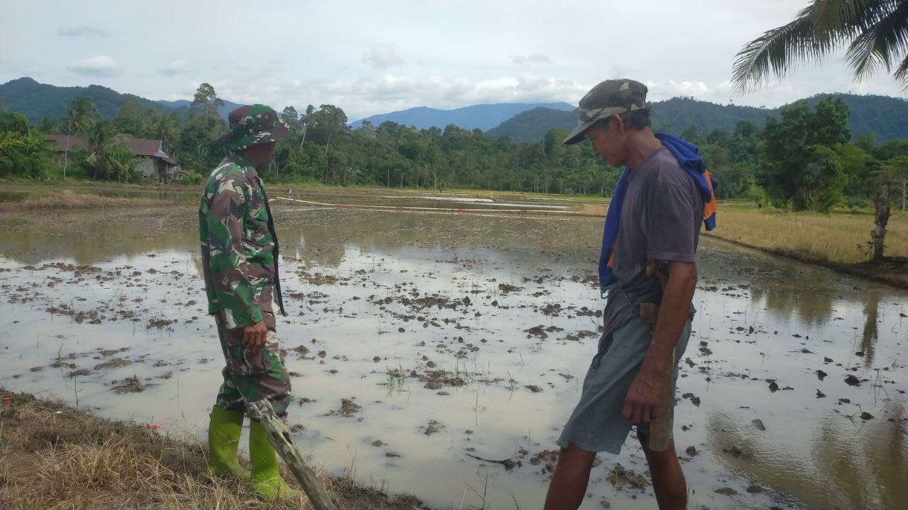 Serma Sinau melakukan pemantauan luas tambah tanam (LTT) di lokasi Kelompok Tani Lagalumpang, Dusun 2 Cempa, Desa Betao Riase, Kecamatan Pitu Riawa, Kabupaten Sidrap.