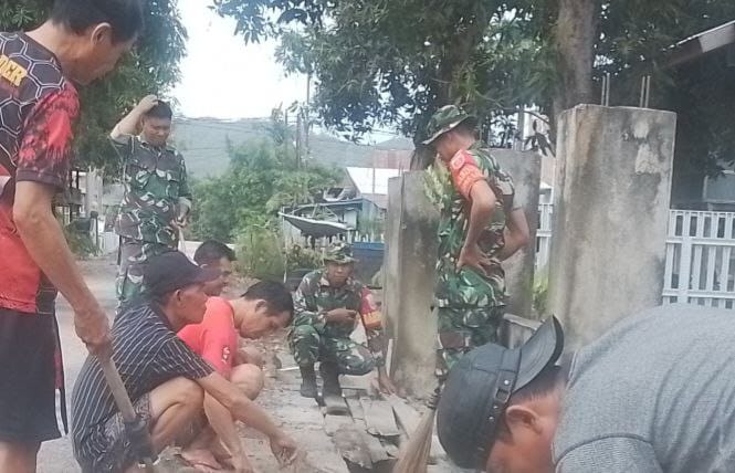 Koramil 01/Panca Lautang Gelar Karja Bakti Pembersihan Parit di Dusun Lamenge, Corawali Sidrap