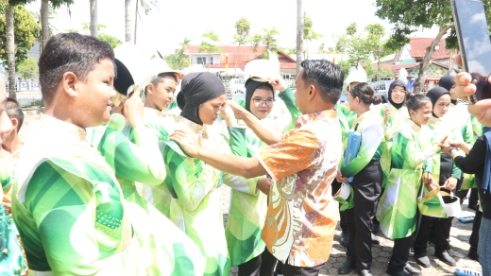 Sebelum pelepasan, tim marching band SMPN 1 menampilkan aksi mereka di hadapan Bupati Sidrap yang turut disaksikan para guru serta orang tua dan wali siswa.