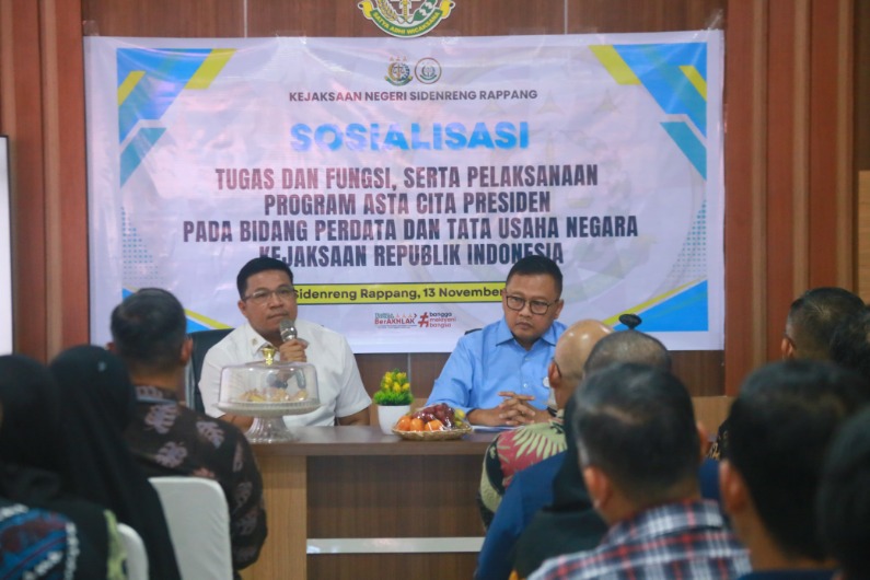 Sidrap, Detik9.com — Pemerintah Kabupaten Sidrap dan Kejaksaan Negeri Sidrap memperkuat sinergi dalam pelaksanaan program Asta Cita Presiden. Hal ini mengemuka dalam Sosialisasi Tugas dan Fungsi Bidang Perdata dan Tata Usaha Negara (Datun) di Aula Kantor Kejaksaan Negeri Sidrap, Kamis (13/11/2025).
